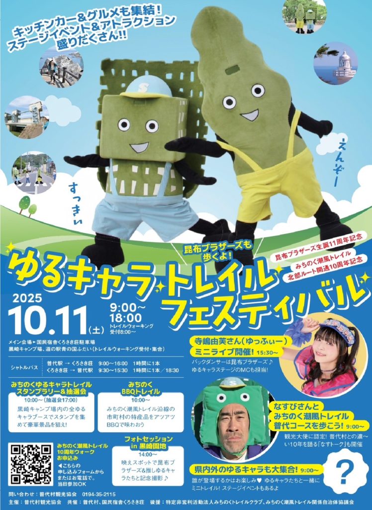 昆布ブラザーズの村、岩手県は「普代村」で開催される「ゆるキャラトレイルフェスティバル」への出演が決定いたしました!「みちのく潮風トレイル」のイベントに、ゆるキャラが登場!